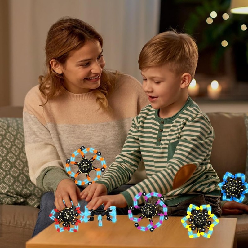 JYXT 6 pcs Transformable Fidget Spinners Stress Relief Sensory Toys for Kids and Adults Autism Boys Girls Luminous Classroom Prize Goodie Bag Pinata Stuffers