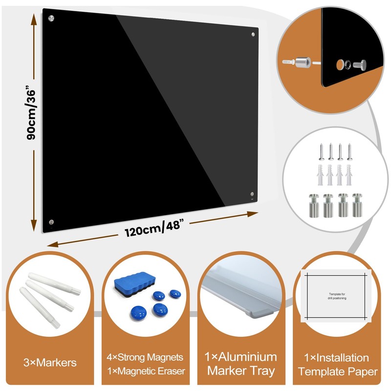 JYYPWB Glass Magnetic Dry-Erase Board - 48 x 36 Inches JYYPWB Glass Blackboard for Wall, Large Frameless Magnetic Black Board for Office,Home & School