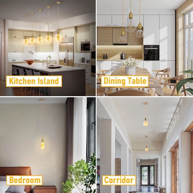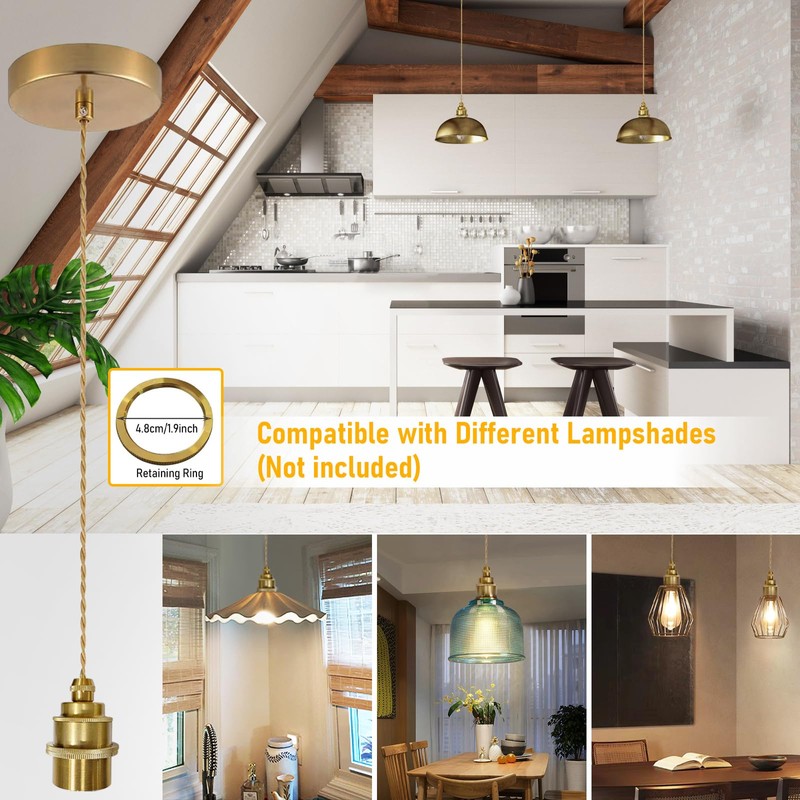 - Easy installation: E27 lamp holder pendant light gold with 150 cm cable are very easy to install, the package contains all necessary installation accessories