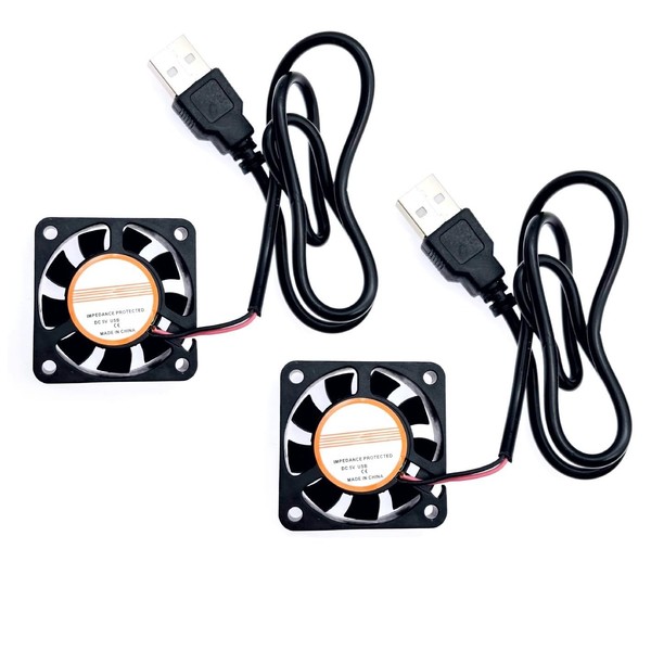 - Package included: 2 pcs of 40mm mini cooling fan 5v dc with USB cable. Size: 40mm x 40mm x 10mm. Wire length: 500mm. Powered way: USB connector.