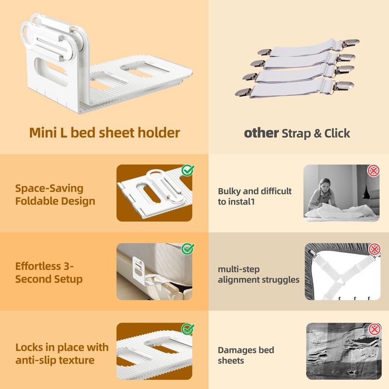 【Keep Sheets Tight & Snug】Are you tired of loose sheets? With our sheet holder, keep the sheets tight, snug and in place. No matter turn so much in sleep it will not slippage, these mattress sheet holders will ensure that your fitted sheet stays in place. Let you sleep soundly every night and bid farewell to frequent reinstallation!