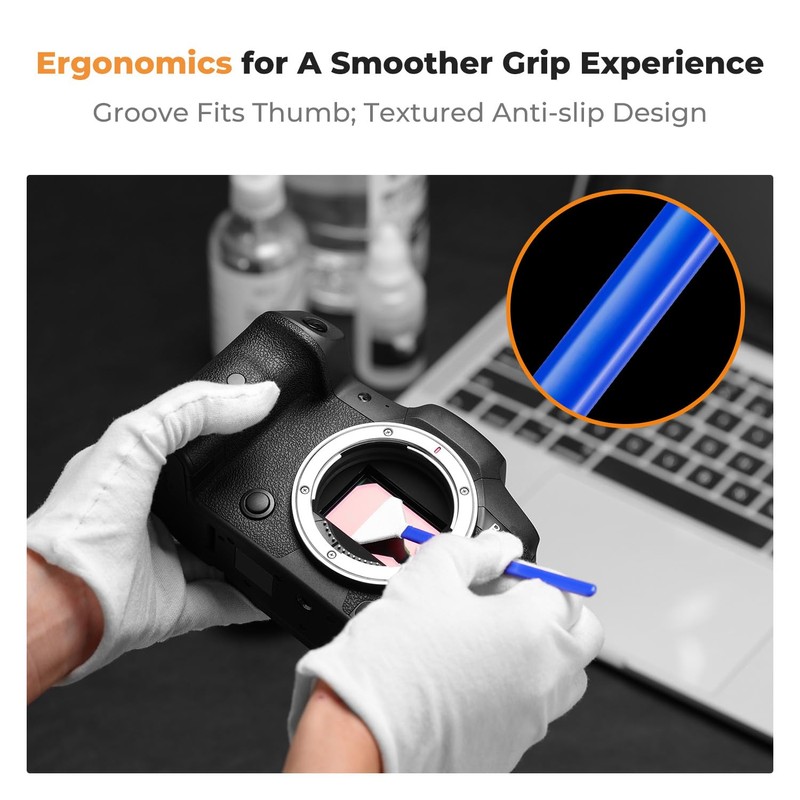 - 3: Tailored according to the size of the full frame sensor Smudge-and lintfree, flexible grip rod allows the head to be close to the sensor without harm.