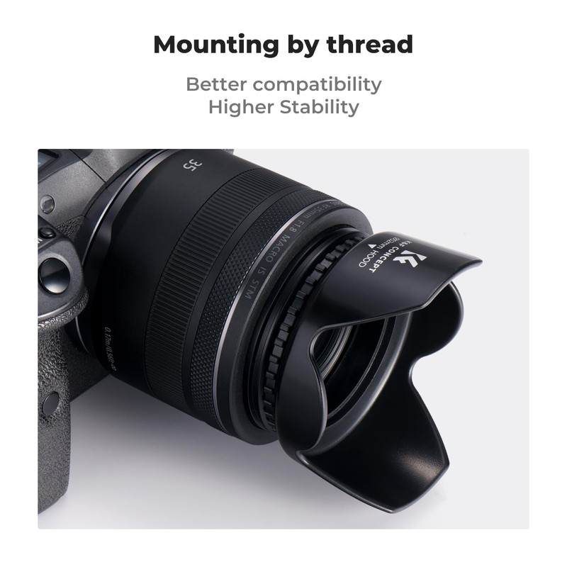 • Note: Not suitable for wide-angle shooting, focal length must not be less than 25mm. The hoods cannot be mounted in reverse. We do not recommend mounting with a filter and lens cap.