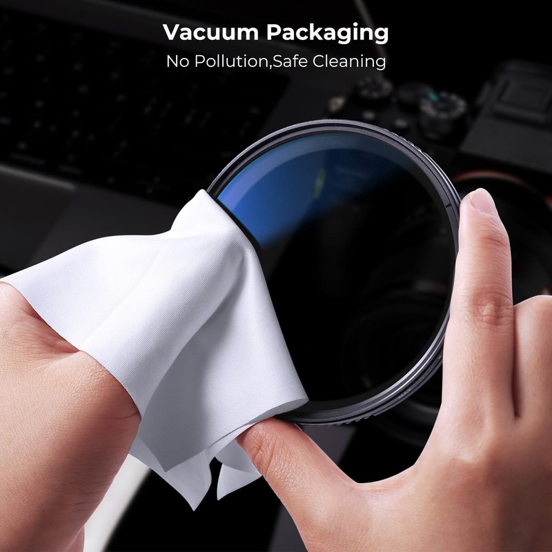 6.Complimentary three vacuum-packed cleaning cloths, safe and clean, to ensure no injury to the lens/filter.