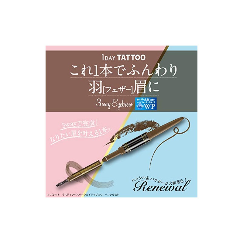K-Palette WP 01 Lasting Three-Way Eyebrow Pencil, Light Brown, 0.02 oz (0.4 g), Pencil, 0.004 oz (0.1 g), 0.02 oz (0.5 g) (x 1)