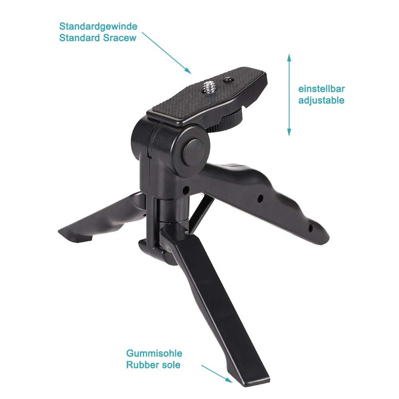 Qualitativ & Innovativ: K-S-Trade Stativ Tisch-Ständer Dreibein Handy-Stativ Ständer für Sharp Aquos C10 Mini-Stativ Smartphone Tripod Handy-Stativ aus Plastik schwarz (1x)Processing Time