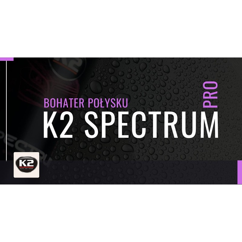 - K2 SPECTRUM PRO is the shining hero based on synthetic wax. A quick detailer designed for quickly refreshing and enhancing the paint and other surfaces. Plastics, rubber, chrome elements – nothing is a challenge for it. It instantly transforms their appearance and provides a spectacular, competition-ready finish.Without hesitation, it deals with dust, fingerprints, or fresh watermarks.