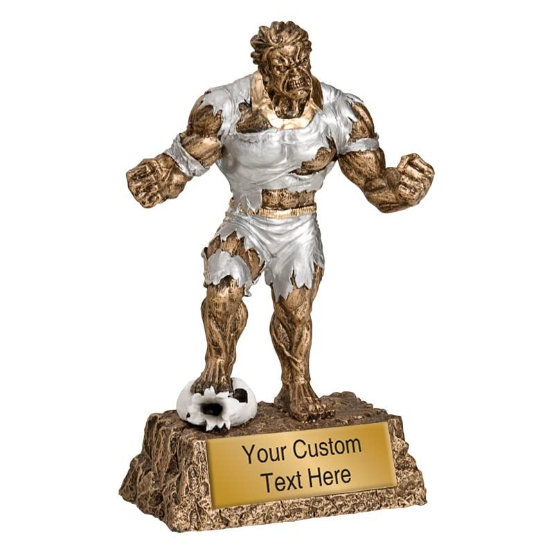 Recognize a monstrous victory with the Monster Resin Soccer Trophy! This trophy is made of hand painted resin and has a gold and silver shine.
