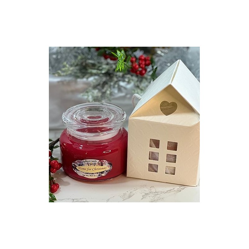 K_R-Home for Christmas Scented Candle. Hand Poured. Notes of Cinnamon and Clove Blend, Holiday Berries, ICY Peppermint, and Evergreen. 10.5 oz. with appx. 40-50 hrs Burn time