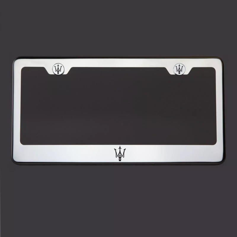 KA T304 SS Stainless Steel Maserati Logo Black Laser Etched License Plate Frame Tag