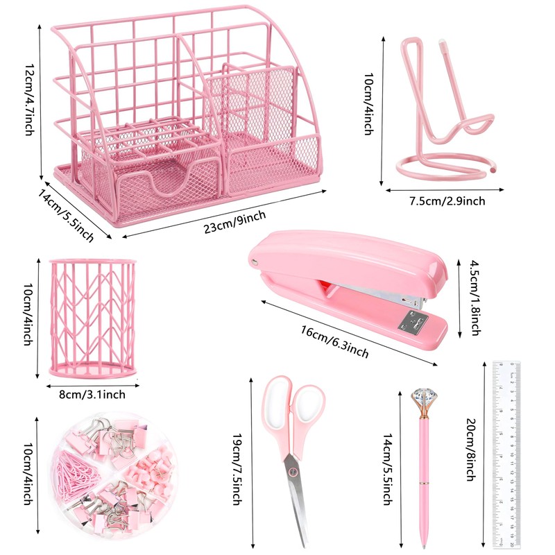 - 【Suitable for Many Occasions】This beautiful pink office stationery set is suitable for home, office, classroom, etc; Nice on desktop, living room, bedroom dresser, coffee table, shelf, etc. Can help to keep the desktop tidy and find something quickly in office desks, study desk or even a make-up desk.