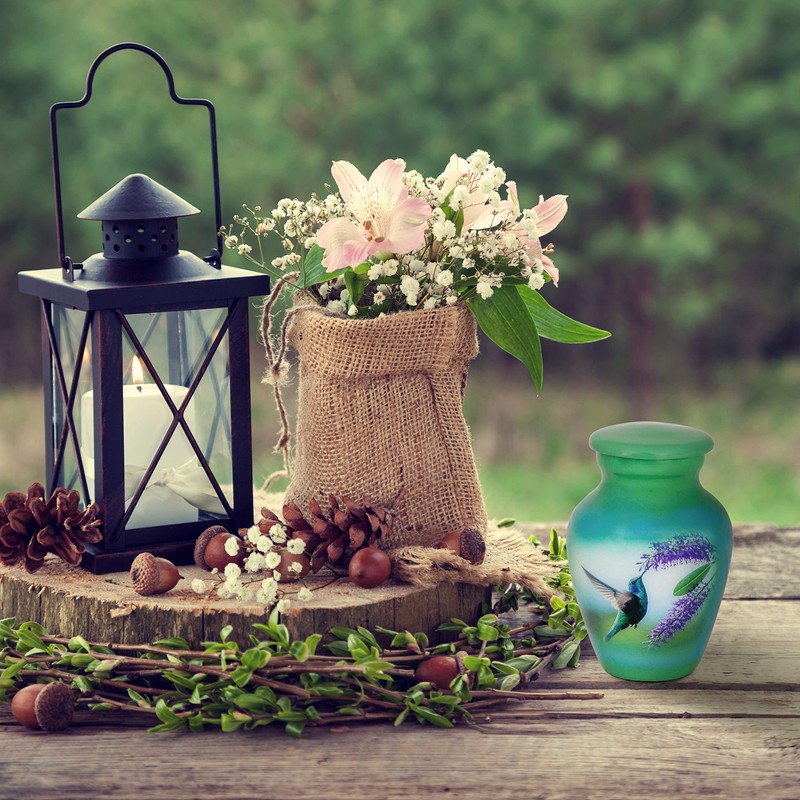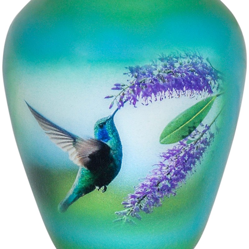 - A DECIOUS WISH Make your divorced loved ones part of your life thanks to the graceful keepsake cremation urn engraved with a magnificent hummingbird. Made from durable metal, this urn represents a dignified desire to keep your loved one close to your heart.