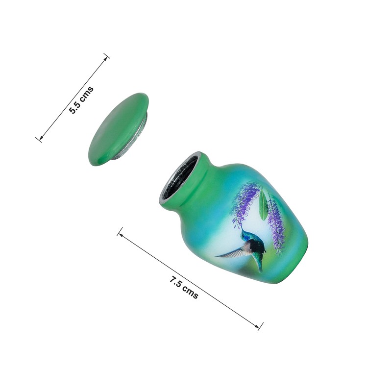 kaangulmez SMARA Small Keepsake Cremation Urn with Velvet Case Choose From Unique Colours Lovely Sharing Mini Metal Token For Human Ashes or Pet. (Keepsake, Hummingbird (Green))