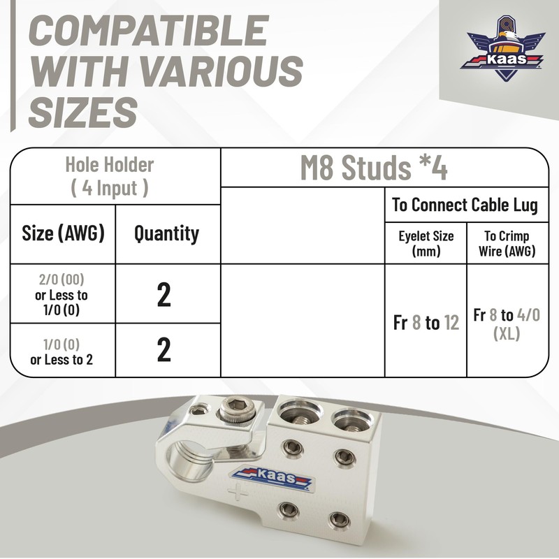 These connectors are designed to fit 8AWG up to 4/0(XL) AWG Gauge, making them suitable for a wide range of vehicles.