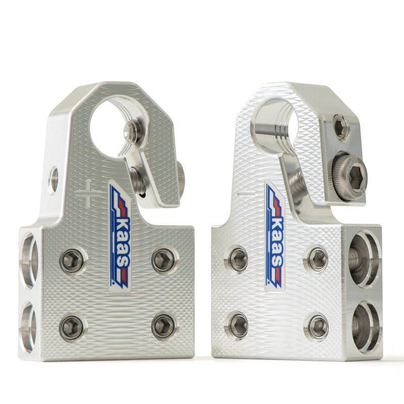 Kaas Lead Acid Battery Terminal Clamps, Metallic Silver, Positive and Negative Set, Battery Post Adapter for SAE/DIN/EN Tapered Top Post, Compatible with 8AWG to 4/0 AWG