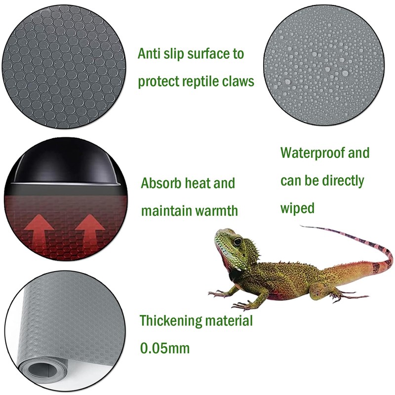 - SAFE AND COMFORTABLE : Non-adhesive and non-abrasive material is gentle on paws, claws and bellies alike. Seamless and textured surface is great for pet because it helps prevent slipping and joint injury. Special thickened EVA material absorbs heat to maintain warmth inside the reptile tank and regulate humidity
