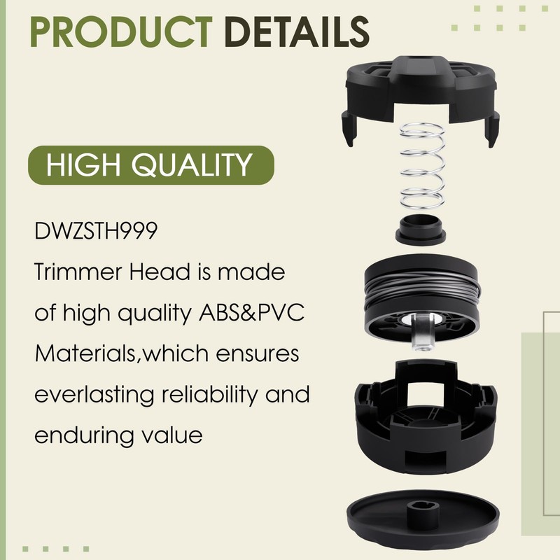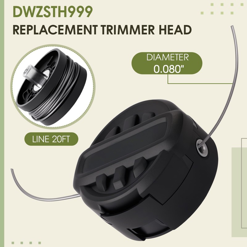 • DWZSTH999 Trimmer Head Shell is made of high-quality material,pre-wound 20ft 0.080" aerodynamic line is made from combination of flexible and impact-resistant materials for cordless cutting efficiency