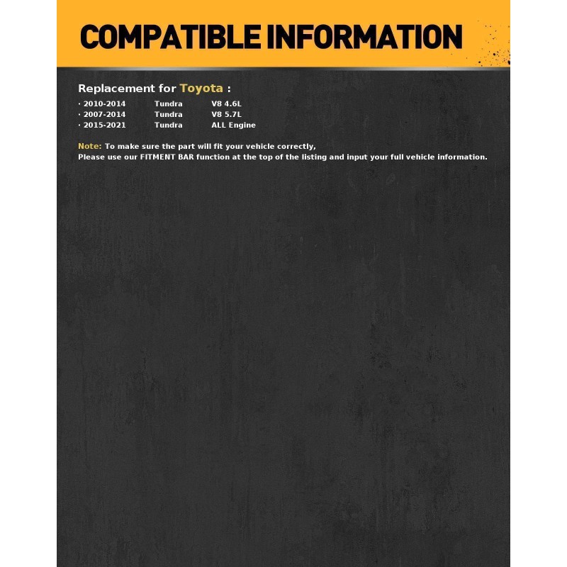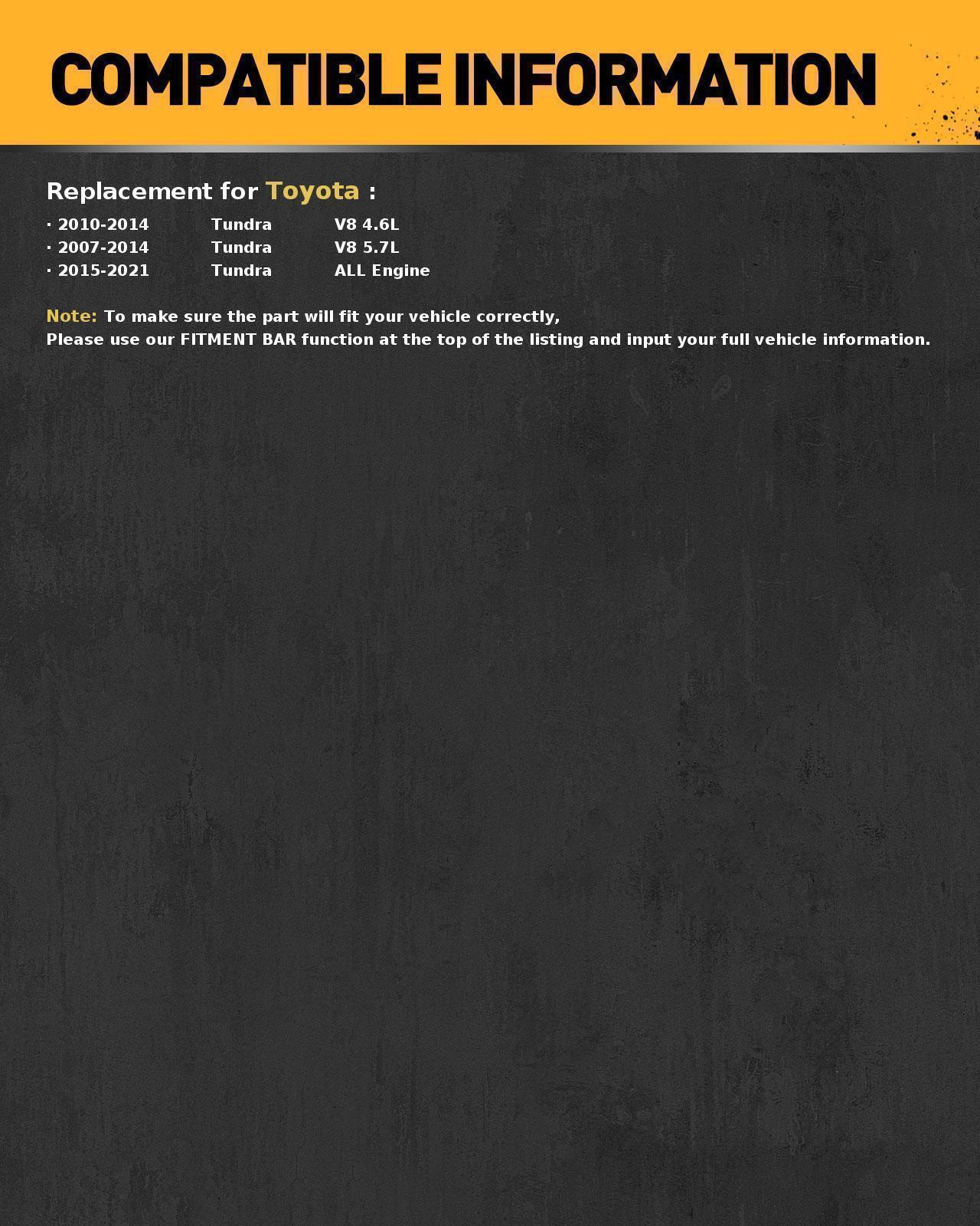 - Fitment: For 2007-2017 TOYOTA TUNDRA 8CYL 5.7L 471-1016