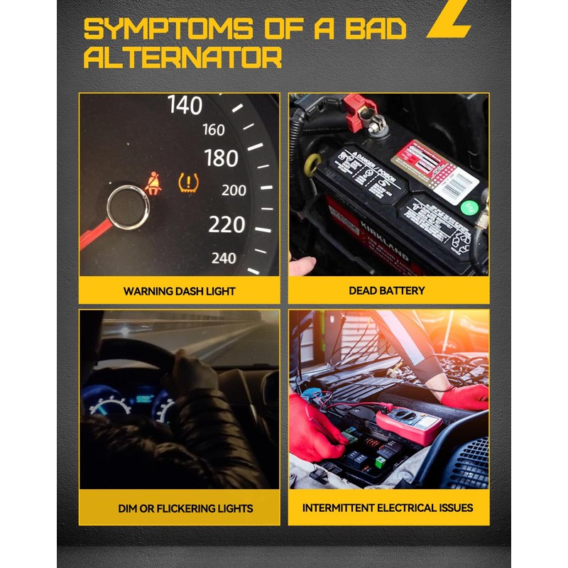 - Upgraded Alternator:Alternators feature high-Quality bearings with high-temp lubricant and double-lip rubber seals to reduce friction, vibration and noise; Rotors and stators calibrated and then sealed with secondary insulating coating to help prevent shorts.