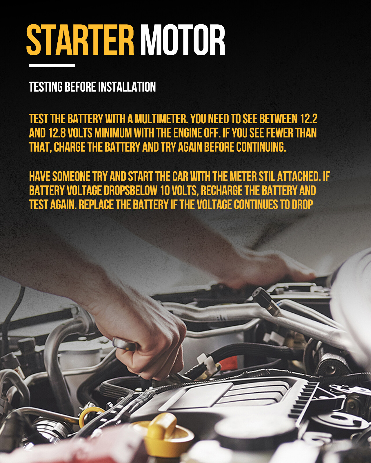 If the vehicle fails to start with the new starter in place, ensure the battery is fully charged.
