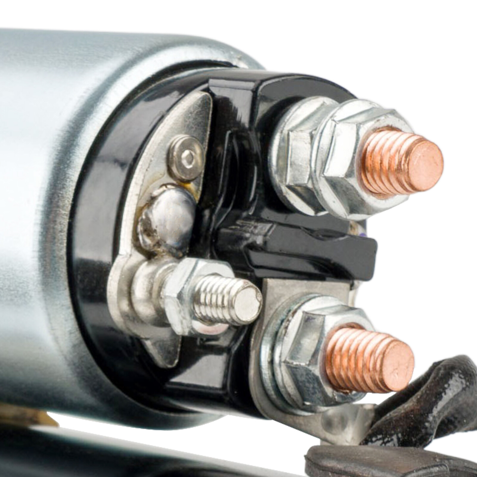 With the starter secured in place, reconnect the wiring you disconnected from the old starter onto the terminals on the new one. If your new solenoid has four terminals but your old one had two, only utilize the top and bottom terminal on the new solenoid. If your old one had four and the new one does as well, connect them to the same terminals they were connected to on the old one.