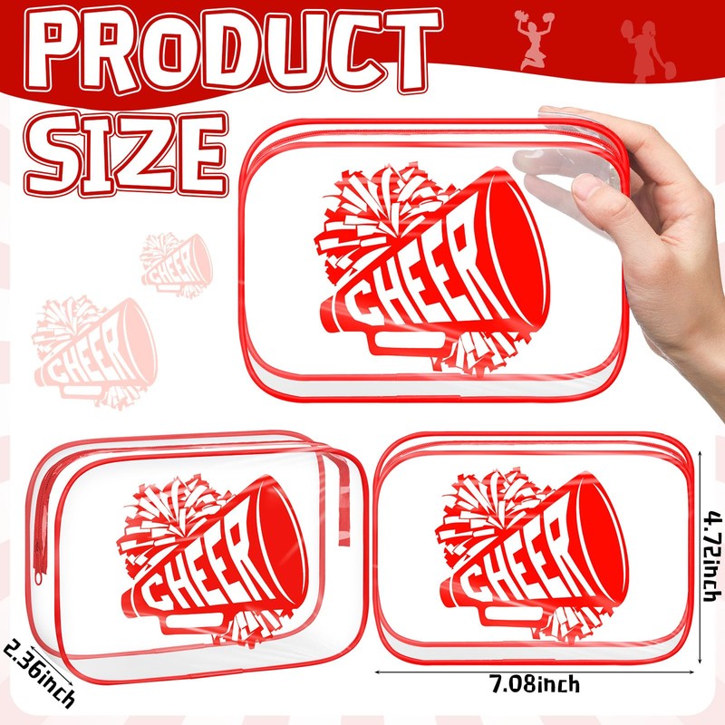 - Cheer Style Makeup Bags: you will get 24 pieces of cheer makeup bags, which are printed with [CHEER] words and cute patterns in red, lovely and unique, enough quantities to meet your daily using and replacing needs, ideal gift choice for your team members and good friends