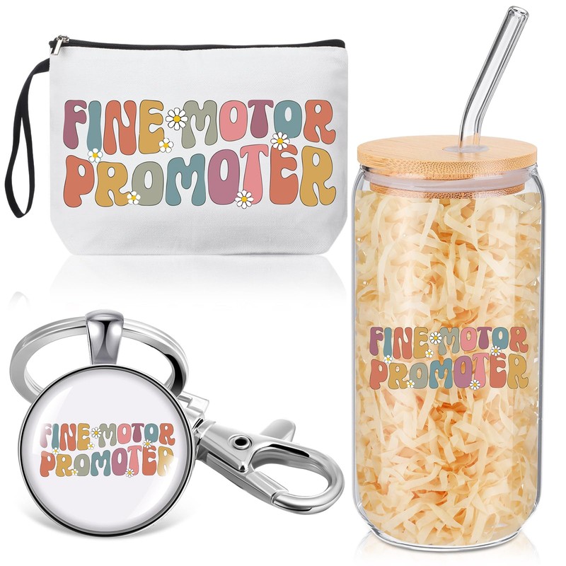 - Thoughtful Gift Set for Therapists: Show your appreciation with this charming Occupational Therapy Gift set, including 1 vibrant canvas makeup bag, 1 durable glass cup with lid and straw, and 1 cute resin keychain. Thoughtfully designed for therapy professionals, this set is a meaningful expression of gratitude