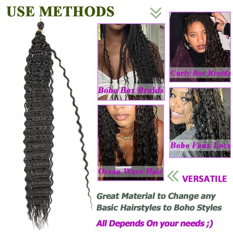 - USAGES: Ocean Wave Crochet Hair with Elegant Curl Texture, Great for Making Many Twist / Braiding Hair Styles, Like Boho Box Braids, Goddess River faux locs, Boho Senegalese Twists, Goddess Box Braids and So on with others Hair Materials