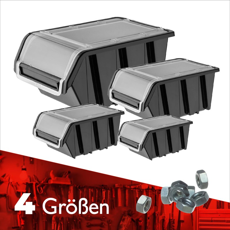 - Various models: the storage boxes are available in the two universal colours red and black. In our offer you will find the 155 x 160 mm and 195 x 120 mm large boxes in sets of 1, 10 and 20 pieces as well as larger boxes individually (230 x 160 mm and 490 x 298 mm).
