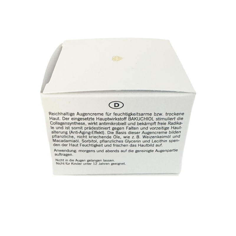 - The basis of this rich eye cream for dry skin and care are vegetable, non-creeping oils such as wheat germ oil and the valuable macadamia oil.