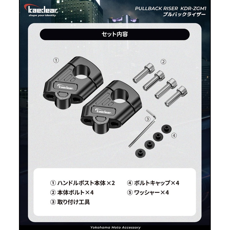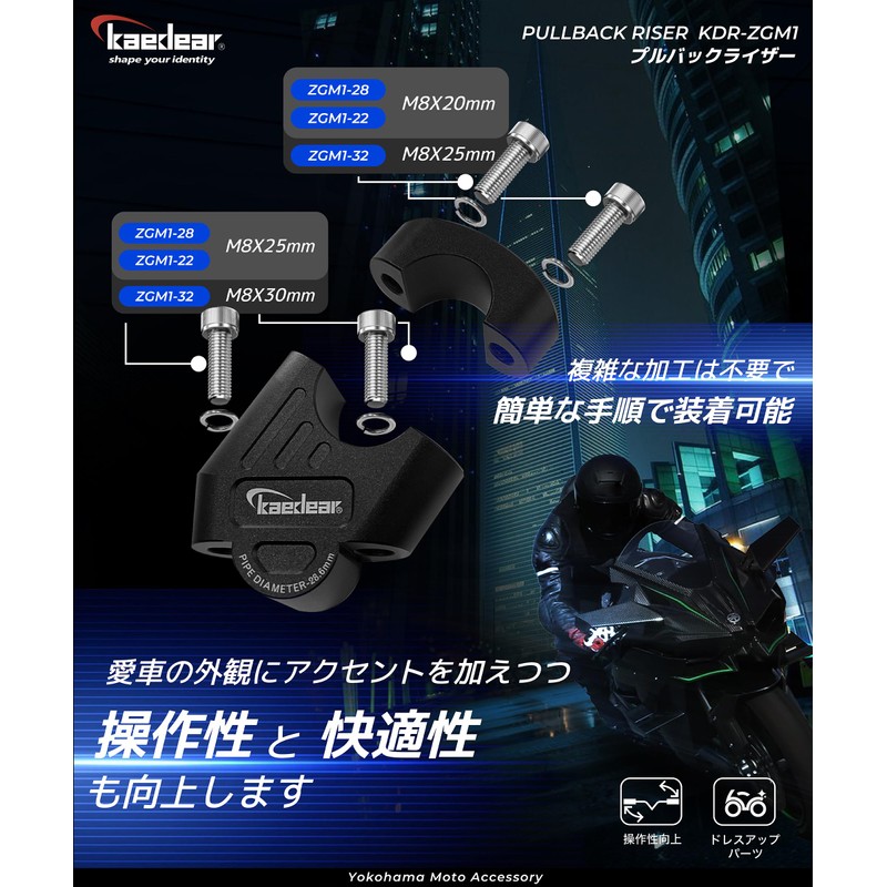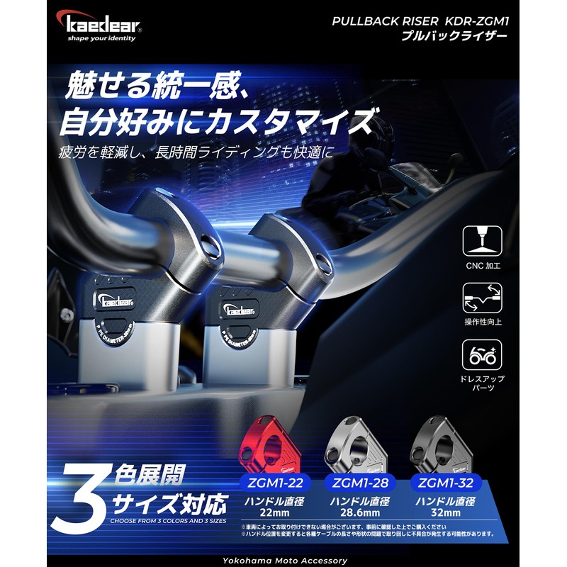 - (Product Details) Product Name: Pull Back Riser (Handle Post); Model Number: KDR-ZGM1 (ZGM1-22/ZGM1-28/ZGM1-32); Compatible Bar Diameter and Effect Guidelines: ZGM1-22 (for 0.9 inch (22.2 mm) Bar); Offset Amount: Approx. 0.7 inch (19 mm); Lift Amount Approx. 1.4 inch (36.4 mm); ZGM1-28 inch (28 inch (28 inch (28.6.6.6 mm). For mm Fat Bars Offset Amount: Approx. 0.8 inches (20 mm), Lift Amount: Approx. 1.5 inches (38.5 mm); ZGM1-32 (for 1.3 inches (32 mm) bar); Offset Amount: Approx. 1.4 inches (27 mm); Lift Amount: Approx. 1.4 inches (36.4 mm); Color: Black/Silver/Red; Material: Aluminum alloy (CNC processing); Set Contents: Main unit x 2; Main unit x 2; Main unit x 2; Main unit x 2; Main unit x 2; Main unit x 4; Main unit x 4; Main unit x 4; Main unit x 4; Main unit