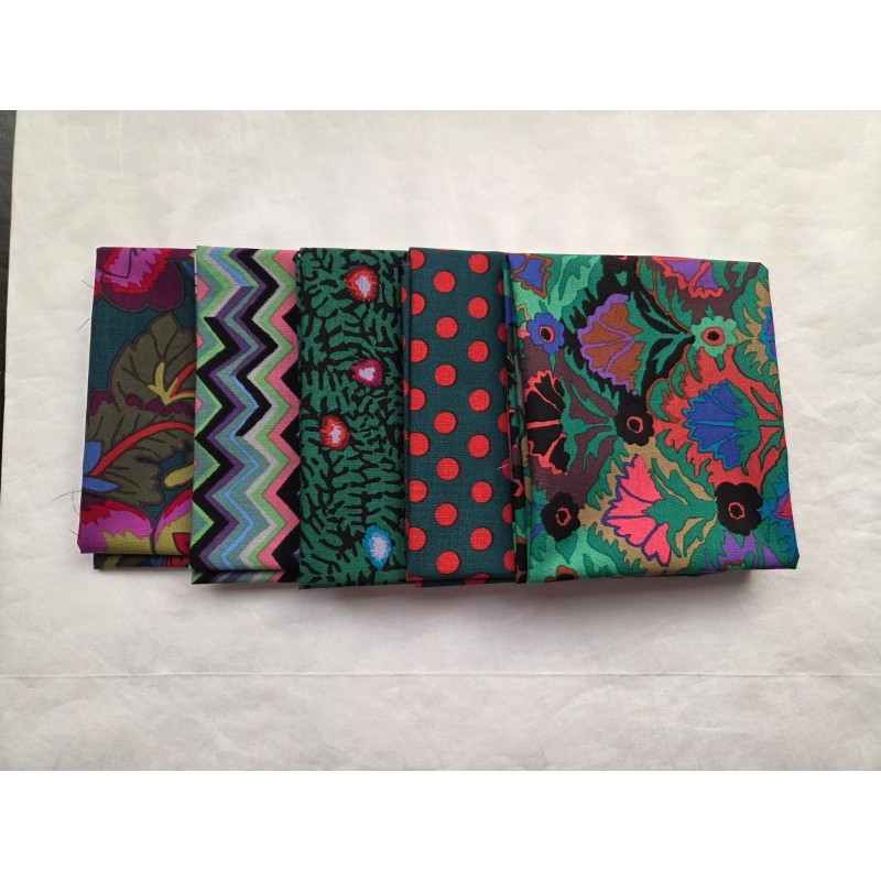 Kaffe Fassett 5 Fat Quarters - Green Kaffe Fassett FQ 18 x 22 Cotton Quilting Fabric Ver. 19