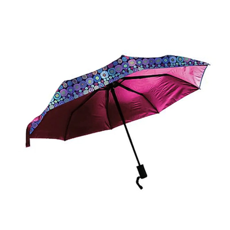 - Beautiful printed umbrella with Kaffe Fassett's Row Flowers design and pop of Magenta color underneath.