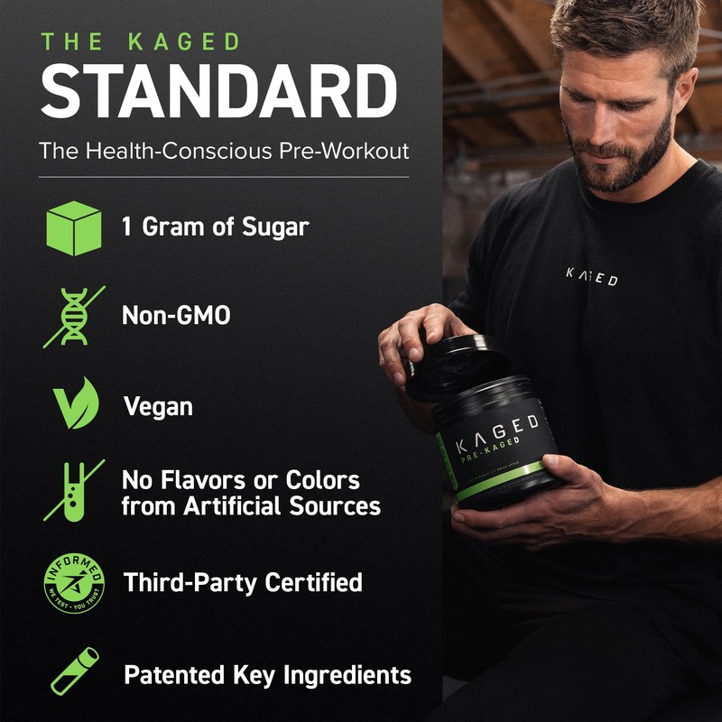 - The industry largest, most fully dosed scoop: With max dose ingredients, and a massive 32g per serving, just one scoop does it all. Kaged Muscle is a health-forward brand, so like all our products, PRE-KAGED has been 3rd party tested, screened for banned-substances, and our ingredient profiles are transparent. So, even the most meticulous athletes can see exactly what they’re getting. There’s a reason it’s one of the highest-rated & most-awarded pre-workout supplements available.
