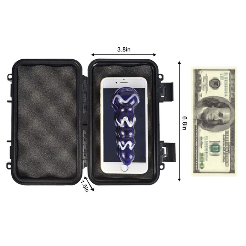 - This extremely cover design measures only 6.8x 3.8 x 1.5 IN .The space inside the box is relatively large and you could put a mobile phone, as shown in the picture.It is built with disable PC and ABS plastics for long term protection and monitoring.