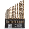 KAHEIGN 13-Piece HSS Twist Drill Bit Set, Metric M35 Cobalt Steel, Titanium-Coated Drill Bit 1.5 mm - 6.5 mm, Extremely Heat Resistant Drill Bit with Straight Shank for Wood, Metal and Plastic