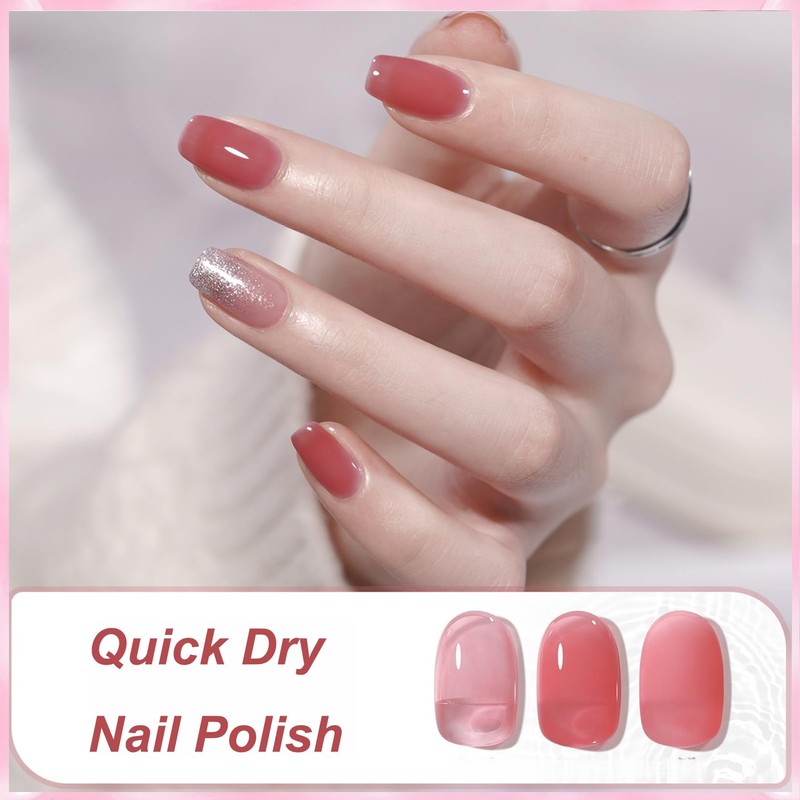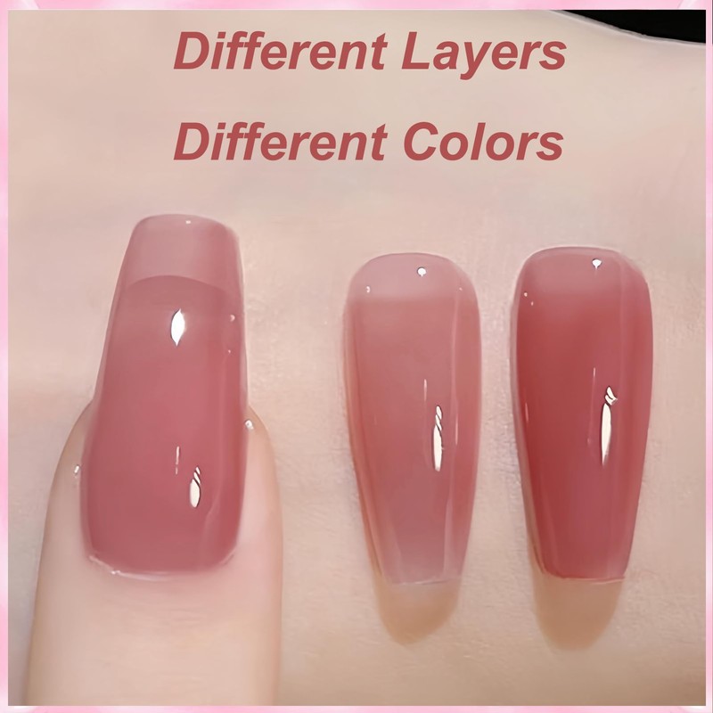- 【Sheer Rose Pink Nail Polish】 A soft, semi-transparent rose pink shade that offers a natural and elegant look. Ideal for a subtle manicure or as a base for layering other polishes