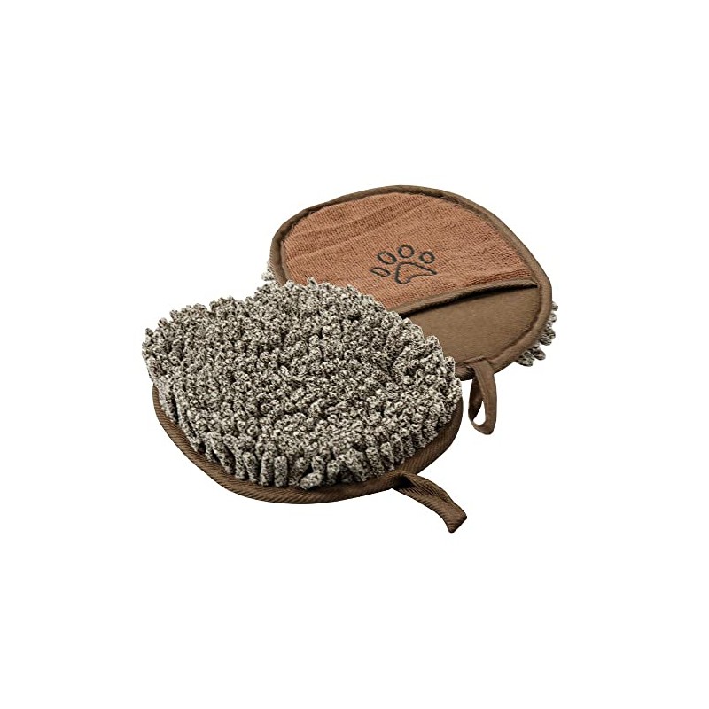 KAHU Dog Glove Made of Fluffy Chenille Material • Wash Mitt for Animals • Absorbent and Quick Drying • Size: 23 x 18 cm • Colour: Brown (Melange)