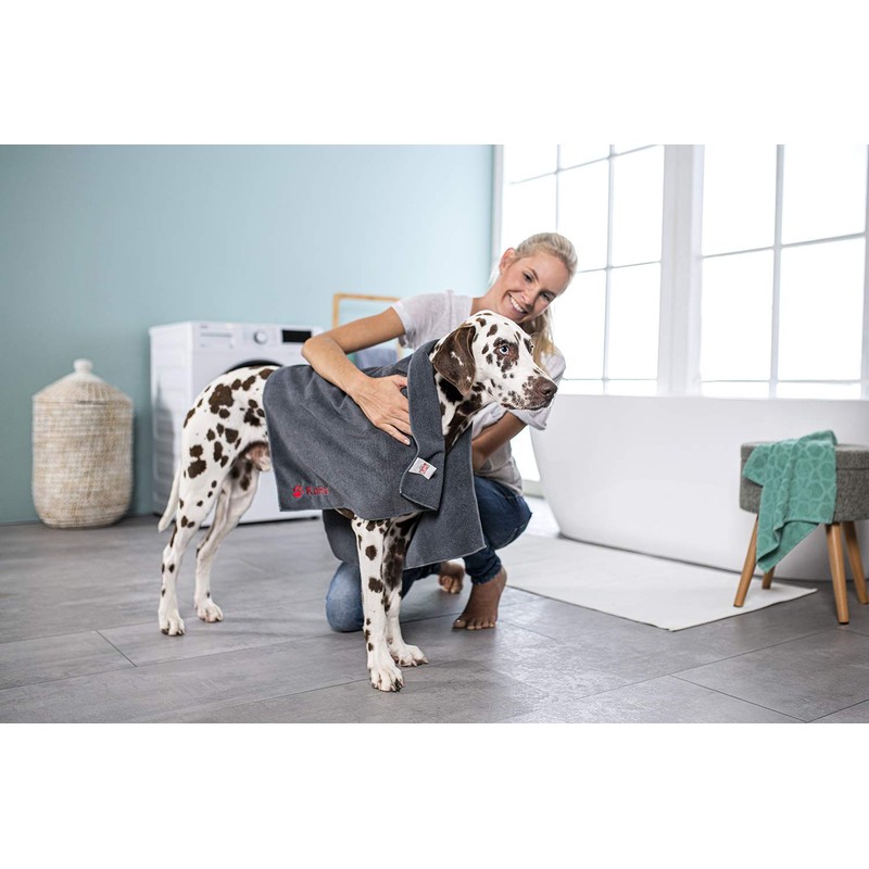 - Practical: as the towel is both light and thin, it is ideal for taking it with you for walks and use it when the dog has once walked through a varnish or has been swimming in a pond.