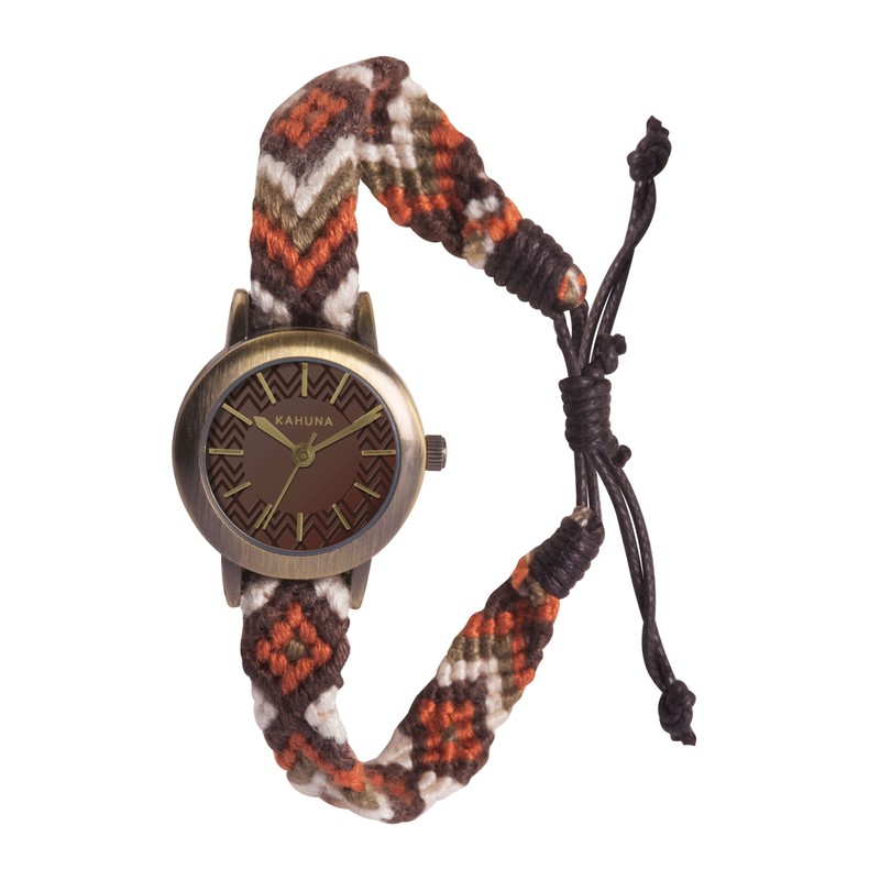Kahuna Women's Quartz Watch with Brown Dial Analogue Display and Brown Fabric Strap KLF-0022L