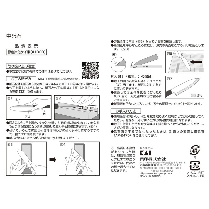 Kai Corporation AP0318 KAI Medium Whetstone, #1000 Grit, Made in China