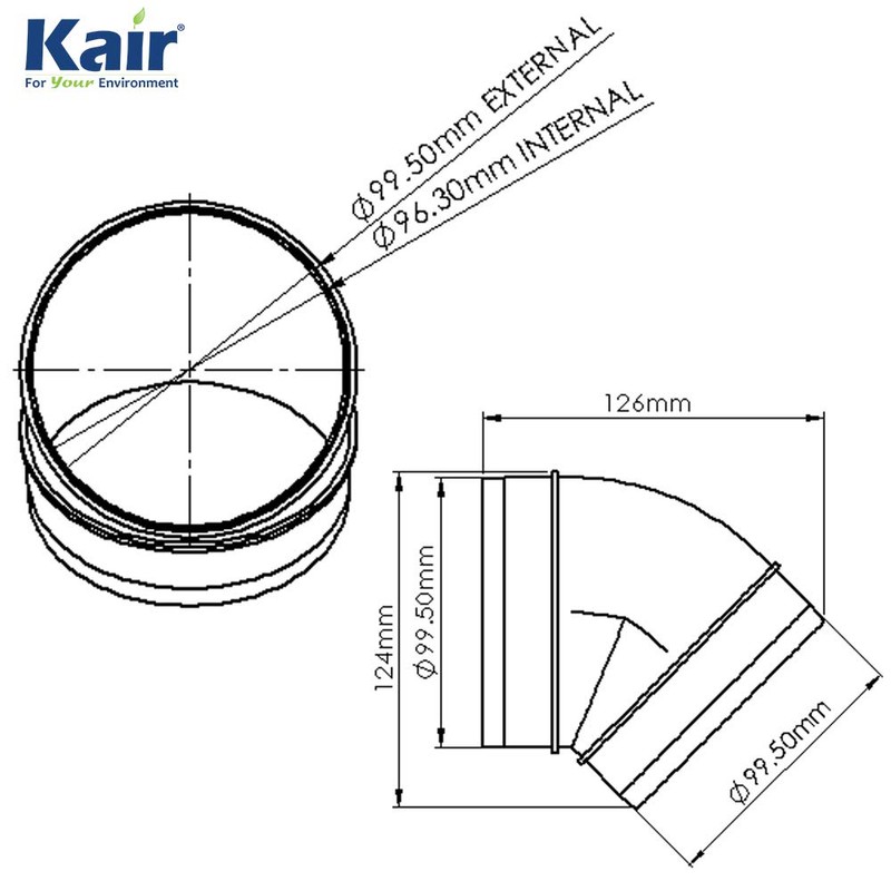 - Our 45-degree bend will push fit inside any female part such as 100mm round pipe or 102mm flexible hose when used with a hose clip or tape.