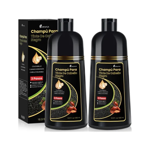 🖤 Kaisasa® Shampoo con Tinte Cubre Canas con Aceite de Argán – Negro – Pack de 2 Unidades 🖤✨