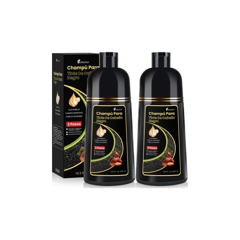 Kaisasa® Shampoo Con Tinte Cubre Canas Con Aceite De Argán - Negro-2 unidades