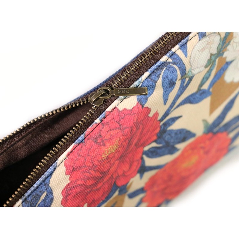 - ・Materials/Sewing: Front: Design printed on Japanese size 8 canvas, Back: navy blue size 8 canvas, Lining: dark brown, Zipper: YKK / Sewn in Japan