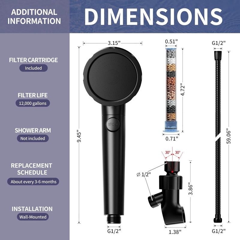 - One-Touch Water Stop: No more fumbling to find the water stop valve while shampooing with your filter shower head with handheld! With just one simple touch, you can instantly stop the water flow, allowing you to save water and avoid splashing. This feature greatly enhances convenience and safety, especially when bathing your child or pet.