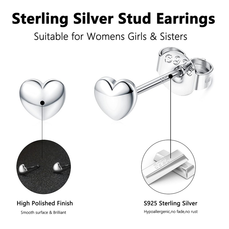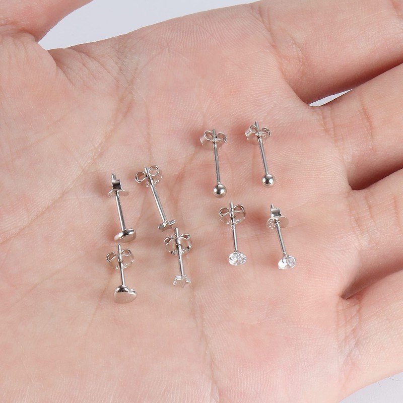 - ☛SIZE OF THE 925 SILVER EARRINGS---Star Earrings Size:3mm,Cubic Zirconia Earrings Size:3mm,Ball Earrings Size:2.5mm,Heart Earrings Size:4mm