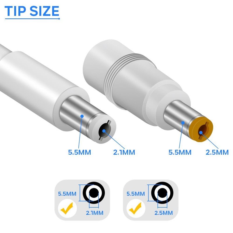 - Humanized Design: We specially gifted a 5.5*2.5mm tip, so you can replace it at any time to meet more application scenarios. The integrated design of power supply and plug makes it more compact and lightweight.