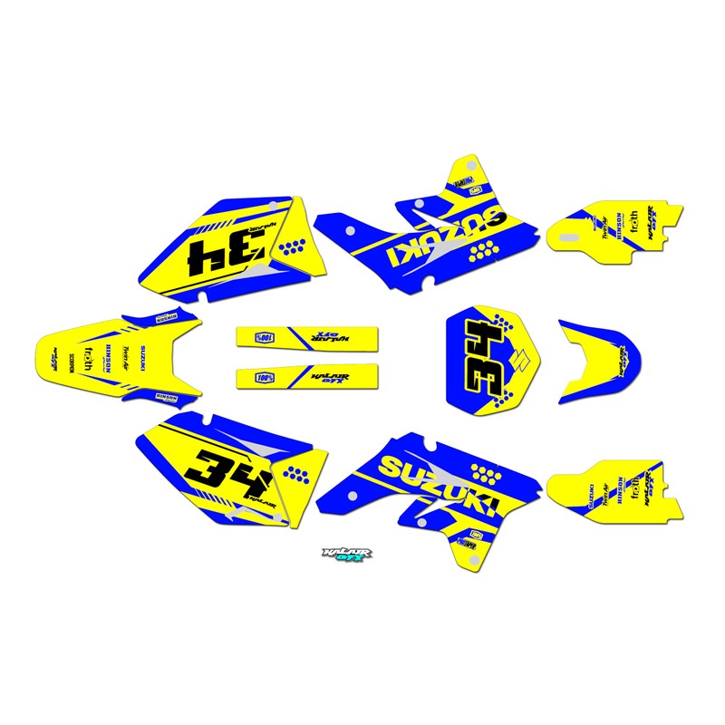 - Fits RMZ250 (2007-2009) on OEM or OEM-replica plastics. Complete graphics kit, includes all pieces shown in the listing. Plastics NOT included.