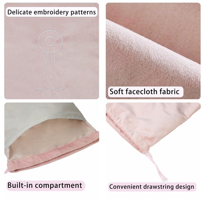 - Stylish & Functional Design: Featuring elegant embroidery, this Satin Flannel hair dryer bag combines practicality with style. Its sleek design makes it a fashionable addition to your travel essentials or home storage solutions.